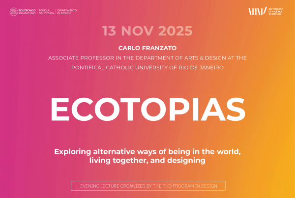 The event is part of the evening lectures series “MORE-THAN-HUMAN AI. Exploring the boundaries between humans and AI in the design of regenerative futures”, organized by the PhD Program in Design in collaboration with the Design Intelligences Institute.